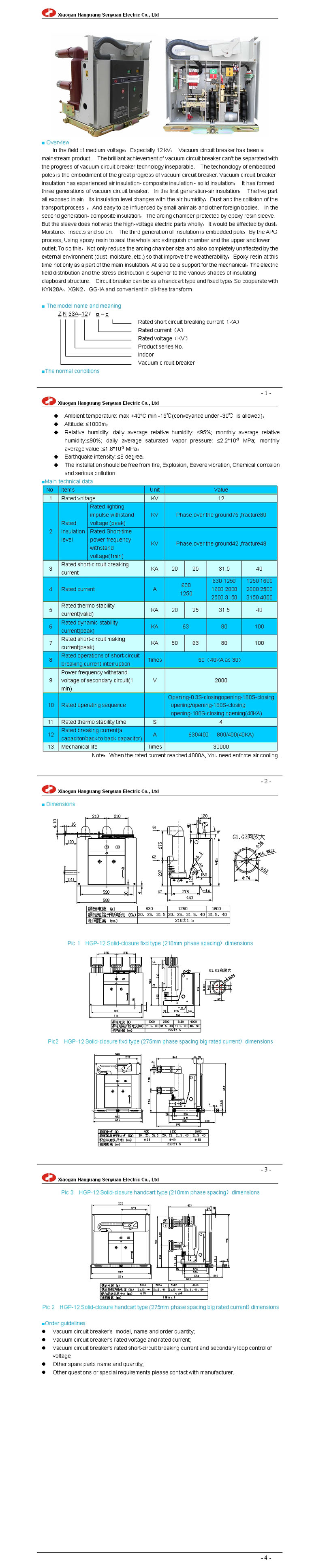 HGP(ZN63A-12) indoor high voltage vacuum circuit breaker (Solid-closure structure)