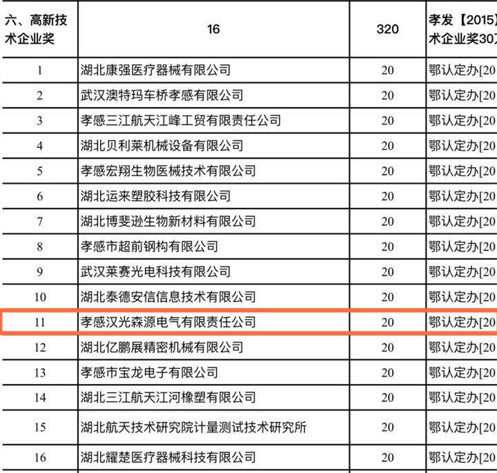 喜報!孝感漢光森源榮獲政府獎勵金26萬元